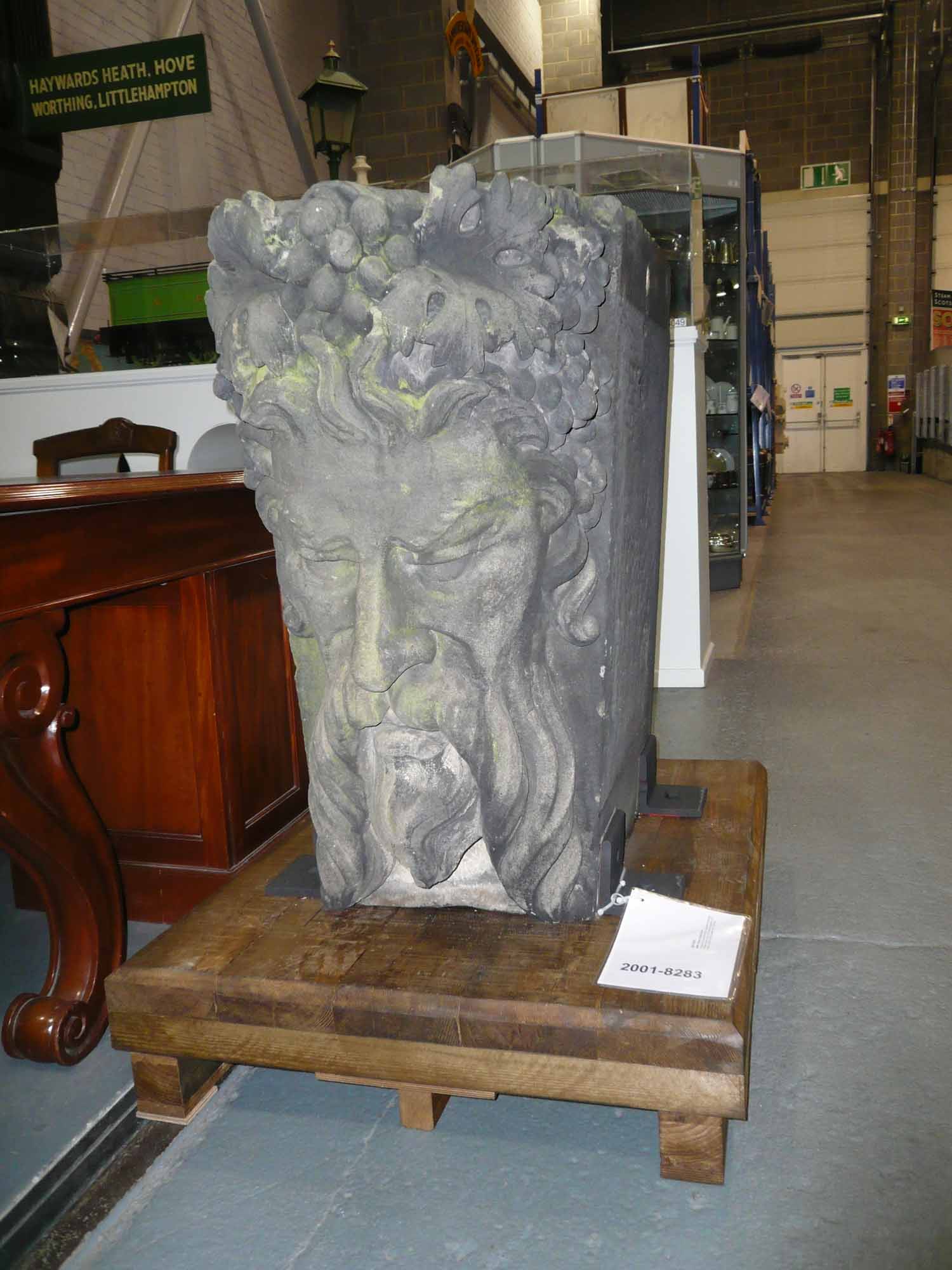 It’s a keystone from a decorative arch in the old South Stockton Railway station (now Thornaby station) and it has never before been on display at the NRM. It depicts a face on one side and grapes on the other. Imagine having this guy glaring down at you as you entered the station.