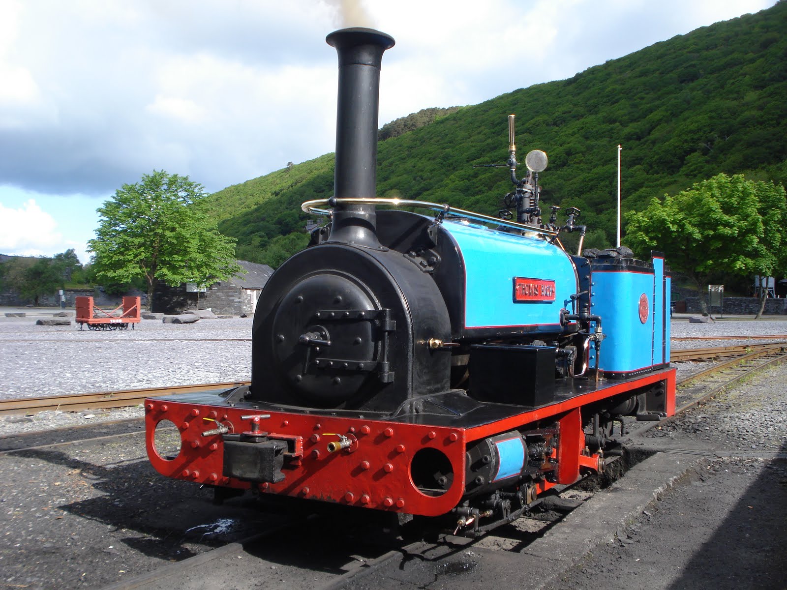 At the suggestion of Julian Birley who was on the Welsh Highland train yesterday, I made my way back to York today via the Llanberis Lake Railway where I found 1904 Quarry Hunslet “Wild Aster/Thomas Bach” raising steam. The loco’s second name is in honour of a former driver at the quarry “Little Thomas” rather than any engine with a face on it!