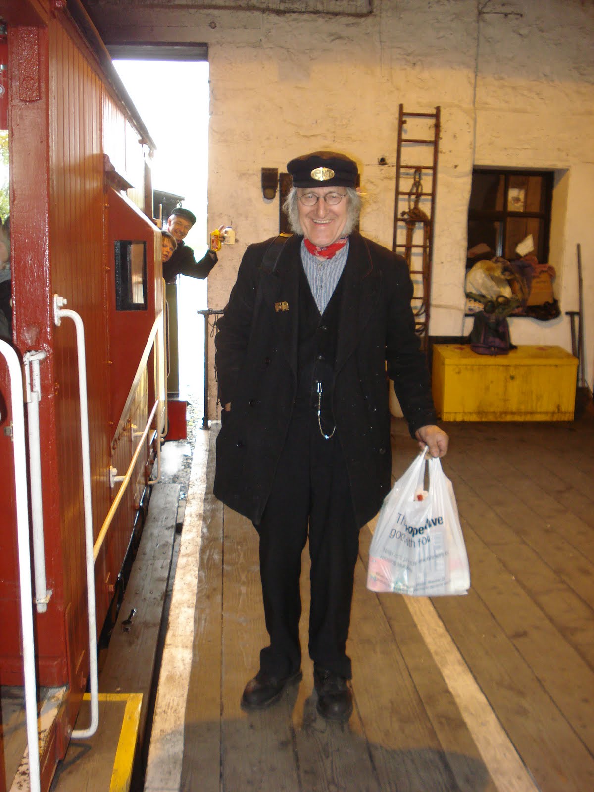 During the afternoon, Alan Middleton and Tim Owen of the Furness Railway Trust got short of supplies, so went shopping by train and are seen departing from the Goods shed with their Co-op bags!