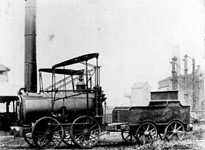 Powered by two vertical cylinders, linked to twin half-beams, with connecting rods to an eccentric drive on the outside of the rear wheels. Described as a ‘Grasshopper Motion’. Built in 1828, it first ran in traffic on 2 June 1829, along the Kingswinford Railway; a three-mile-long track connecting the mines in the Shut End area of The Black Country, with a canal basin at Ashwood on the Staffordshire & Worcestshire Canal.