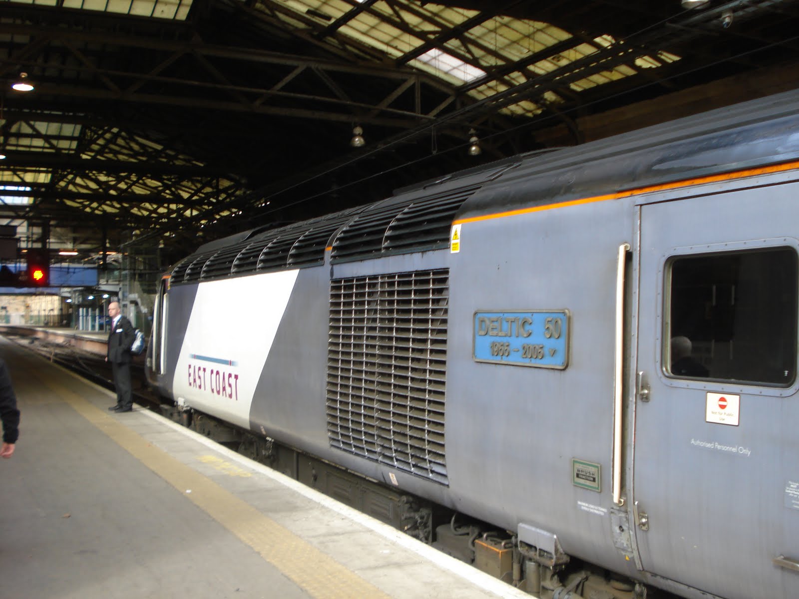 The train north from Darlington was an East Coast 125, leading power car turned out to be “Deltic 50”, part of the naming ceremony involved presenting a nameplate the same as this to Locomotion – and it is on the wall there.