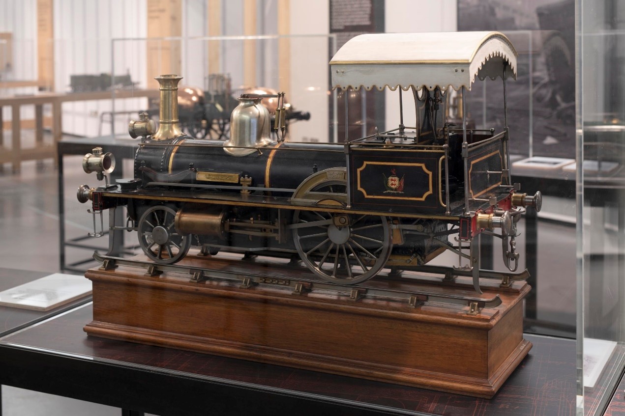 Brass, Steel and Fire merges style with a natural beauty, intrigue and industry. The exhibition is designed in a way that evokes an intimate workshop setting with some of the rarest and unique model locomotives to date. It invites you to sit and admire the models with small classroom chairs and magnifying glasses. It also has short films that allow you to hear and see the models in action. The main part of the exhibition is a collection of railway models, which leads to the original 1829 Rocket—arguably one large model as Stephenson did not have time to build a prototype before the Rainhill Trials.