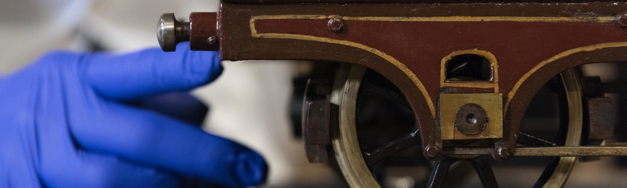 One engine that did need a more intensive conservation treatment was the ‘Egyptian Locomotive’ built in 1862. With Arabic on one side and an English translation on the other side which reads the name of the prince governor ‘Tousson Pacha’, the model was used as a sales tool to persuade Egyptian railway companies to buy British exports. The full-size locomotive ran a service between Alexandria and Suez.
