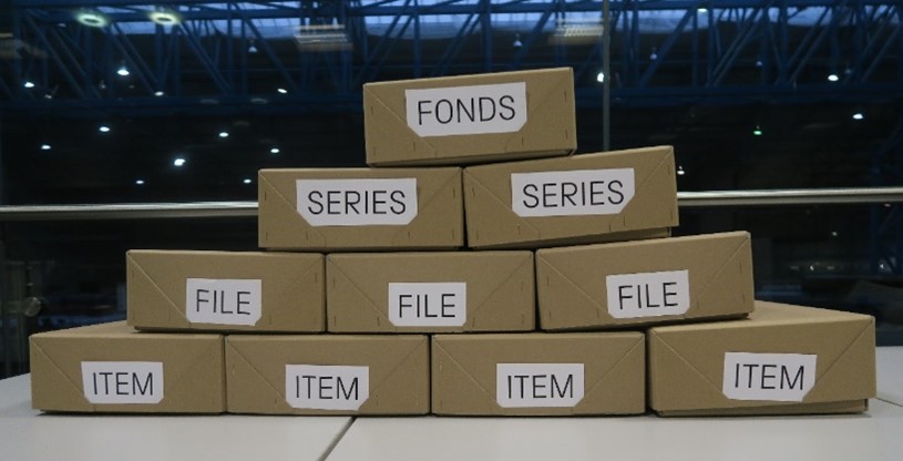 The archival hierarchy depicted through the medium of archive boxes, so along as the hierarchy follows the top-down structure of fonds/series/file/item you can have a mix of any of the various levels, including sub-divisions of fonds and series.Unlike the library catalogues that nestle books under different numbered categories by their subject matter, archive catalogues are arranged into what we call a hierarchy. Think of it like making your grandad’s famous trifle—you want to follow the recipe as it was intended to be made, and you need to ensure the layers are stacked in the right order. The hierarchy is therefore in place to retain a collection’s ‘provenance’ (or its history of use and ownership) and to ensure the original order the different items within the collection are found is kept intact where possible. Both are crucial elements of archival arrangement that are aimed at helping researchers understand the context of the collection and its use by the creator.