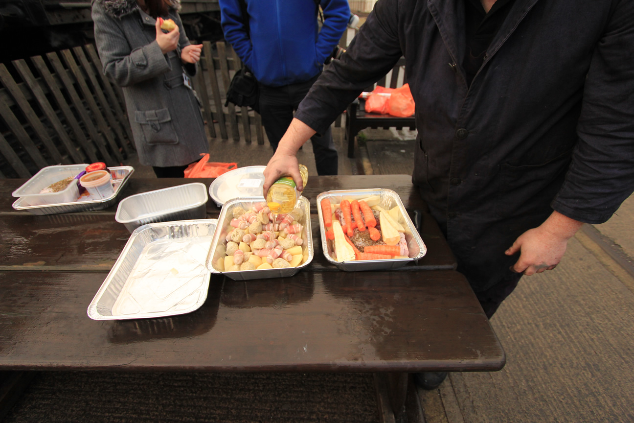 A bacon roll was as complicated as it got, but I’m a man that likes a challenge. Last year one of my fellow railway men managed to cook a pizza, and not to be out done I engineered a way to cook a full turkey meal and all the trimmings in a loco’s smoke box – the char and steam filled space just behind that little door you see at the front of a steam engine.