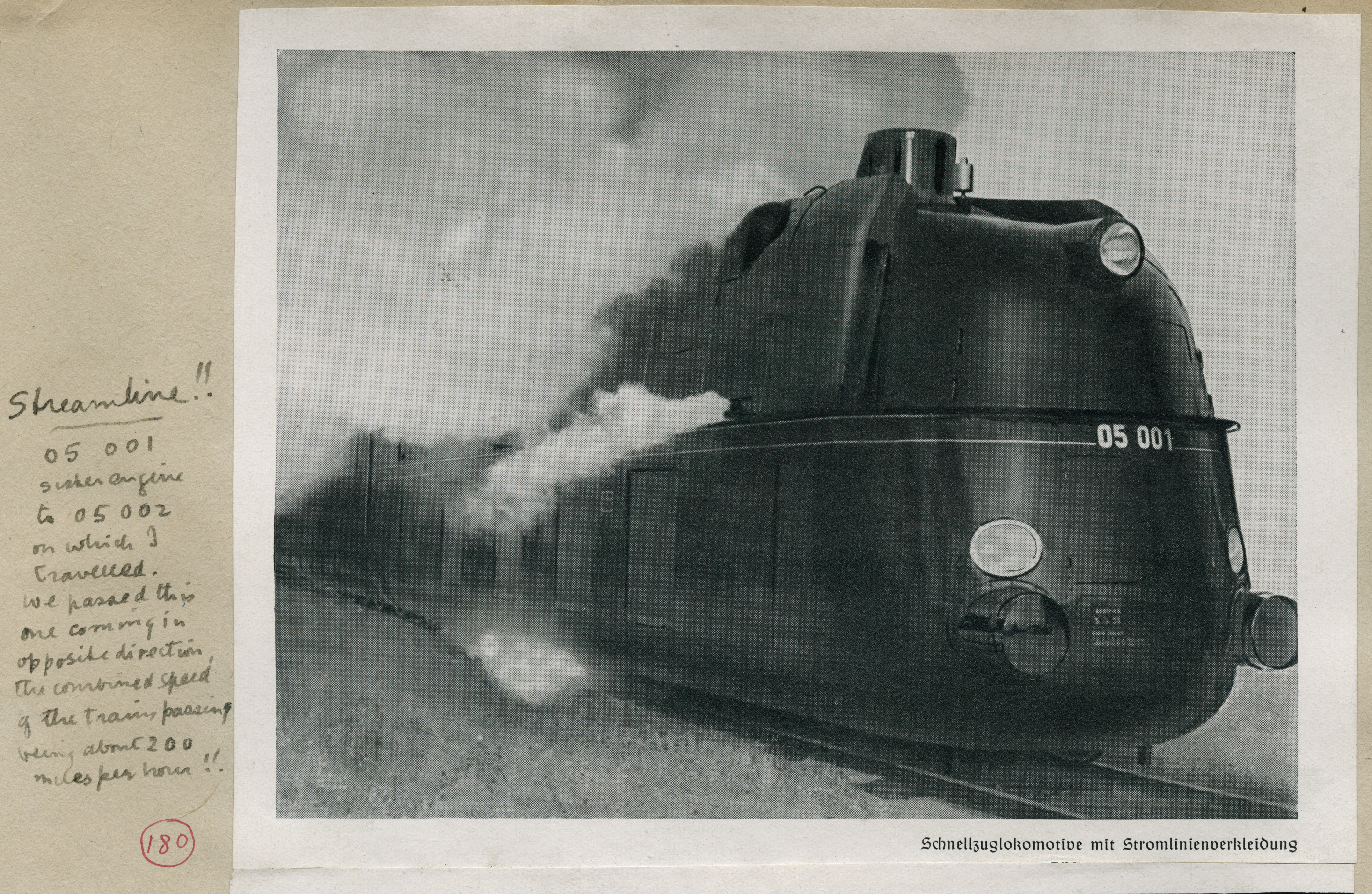 In 1936, he travelled to Germany for the summer meeting of the Institution of Locomotive Engineers, which he documented in a scrapbook. Holcroft describes the journey including the trains on which they travel and the places and people they visit. He recounts discussions on the tense political situation with German colleagues, and is clearly taken aback by some facets of the country at the time. His scrapbook, rather shockingly to us now, incorporates the Institution of Locomotive Engineers 1911-1936 (Silver Jubilee Year) logo and a Swastika.