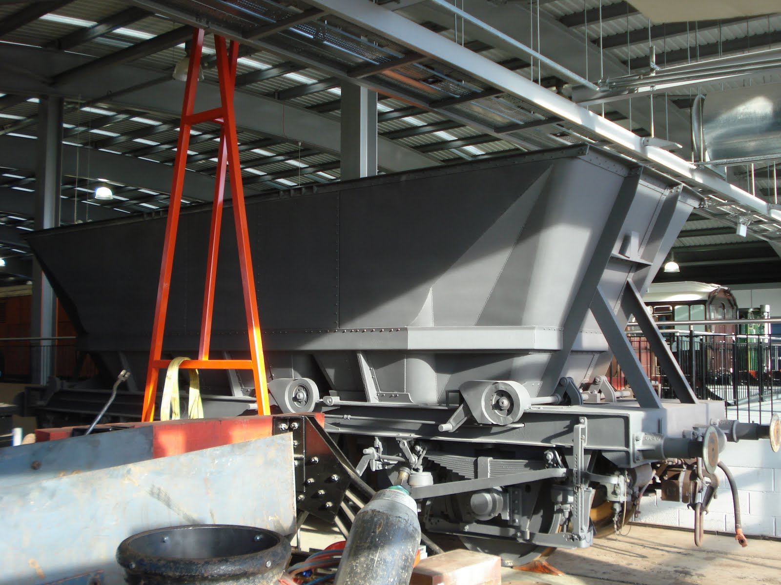 Meanwhile, up in Shildon, Richard has had the prototype HAA Merry Go Round hopper wagon shotblasted prior to repair and repaint and it is currently living in the workshop pending further attention.