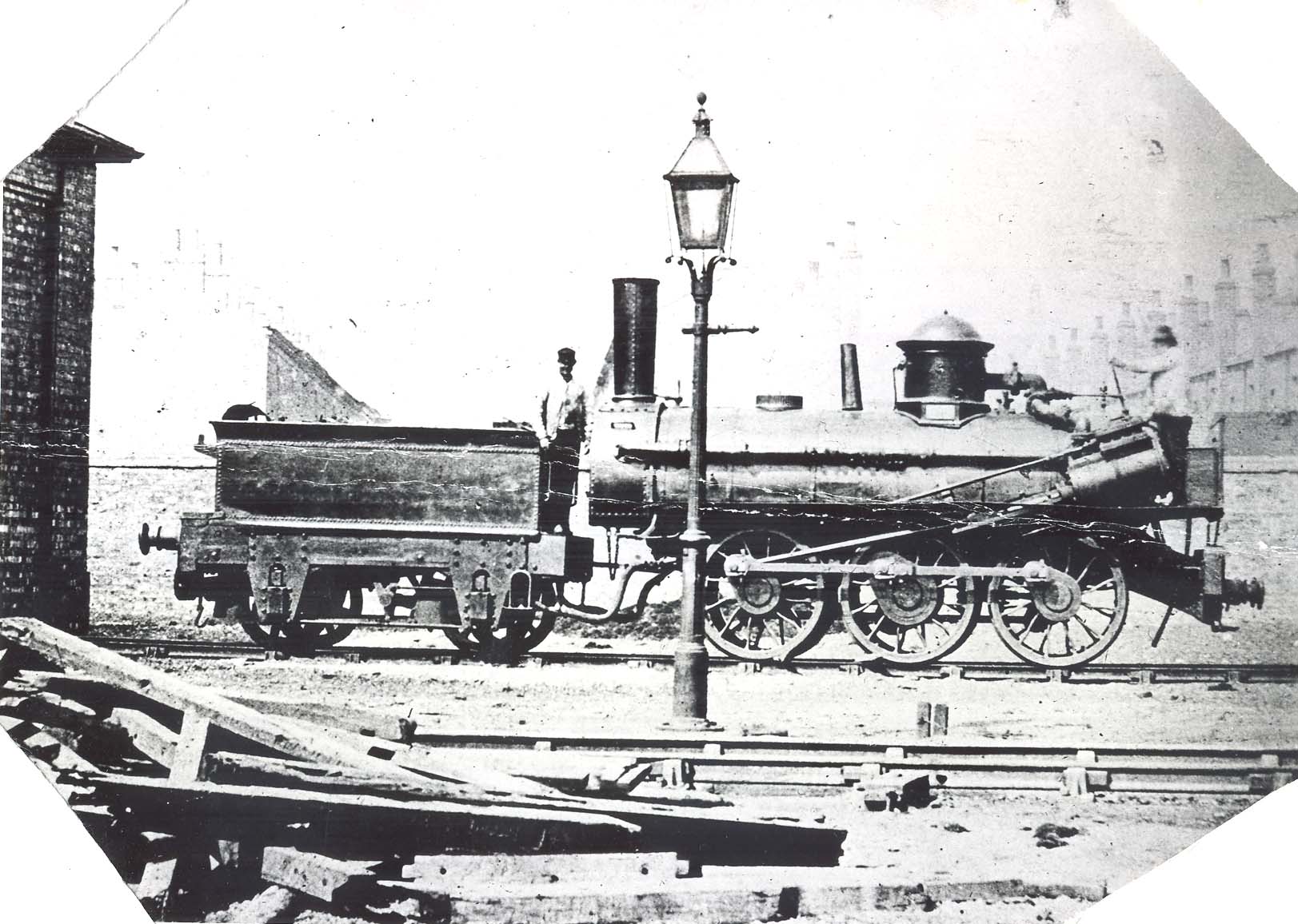 My impression is that the photo is earlier than 1870. The locomotive is so old and inefficient that it would have been difficult to justify keeping it in service in that condition for so long.