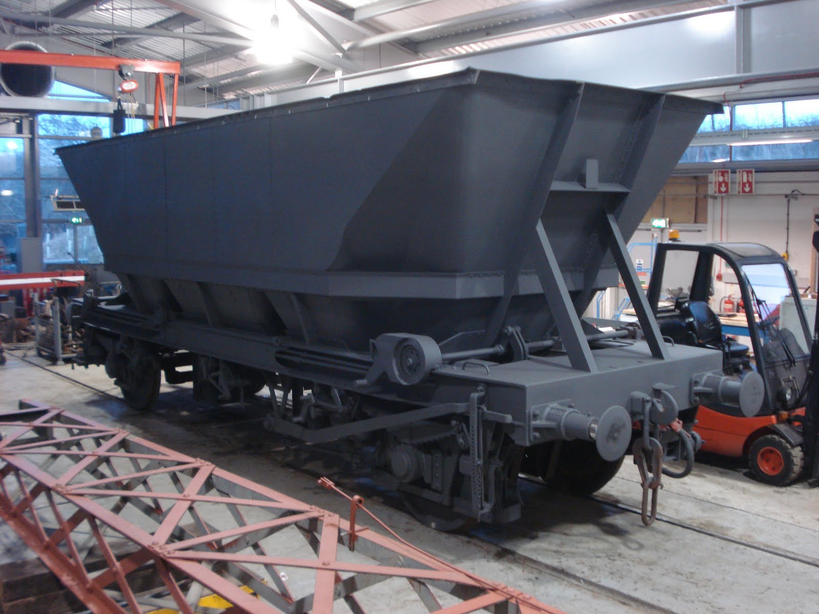 Now in the workshop and properly accessible from all sides is the prototype HAA “Merry Go Round” hopper wagon. Richard and the team can now assess and repair the wagon before Phil Anderson comes in to add the finishing paint touches of lettering in the appropriate style.