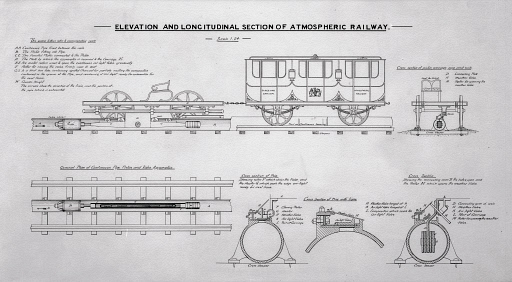 Atmospheric railways were an early type of railway, which used air pressure to provide power for propulsion through a pneumatic tube laid between rails. This system meant that carriages could be propelled across the line without locomotives. But this type of travel failed to take off, and was eventually abandoned.