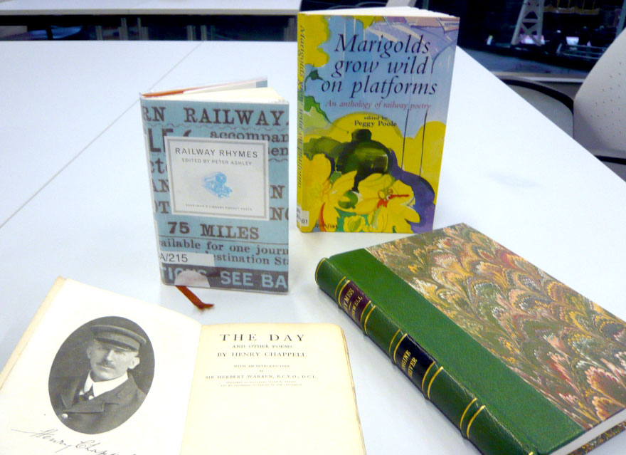 Top-right is Marigolds grow wild on platforms: an anthology of railway poetry, edited by Peggy Poole and published in 1996.