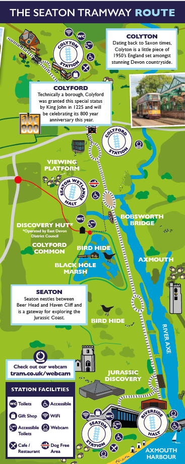 The fleet that arrived in Seaton consisted of trams built by the tramway and trams adapted to run on the narrow gauge, but Seaton Tramway has continually expanded its offering to visitors. In the 1990s the Tramway added 3 new accessible trams to its fleet allowing more visitors to experience a trip through the Axe Valley. The evolution continues and the new Seaton Tramway station built in 2018 is also used as a community space for events and exhibitions. Two new accessible stops provide a viewing platform on the estuary and access to Seaton Wetlands. Seaton Tramway runs the annual Natural Seaton festival that celebrates all that the area has to offer. Most recently the charity reopened the Jurassic Discovery centre, creating a soft play area and dinosaur exhibition. Educational programmes are run with local schools and organisations.