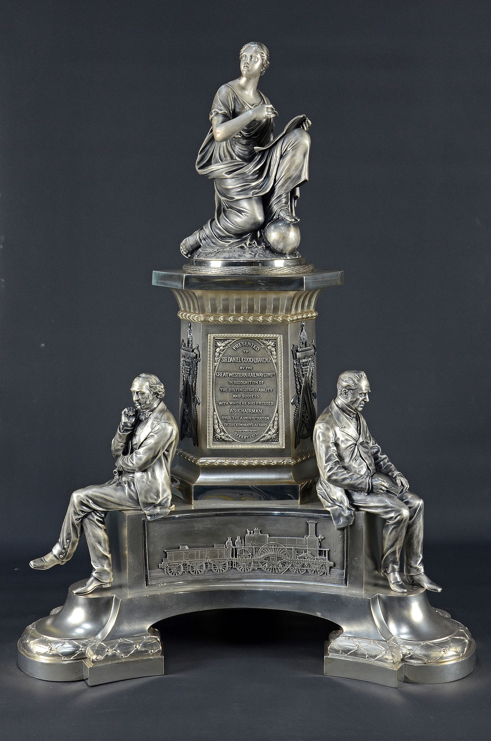 The inscription on the item, clearly legible in the above photograph reads “PRESENTED TO SIR DANIEL GOOCH, BART. M.P. BY THE GREAT WESTERN COMPY. IN RECOGNITION OF THE DISTINGUISHED ABILITY AND SUCCESS WITH WHICH HE HAS PRESIDED AS CHAIRMAN OVER THE ADMINISTRATION OF THE COMPANY’S AFFAIRS. 29 FEBY. 1872”