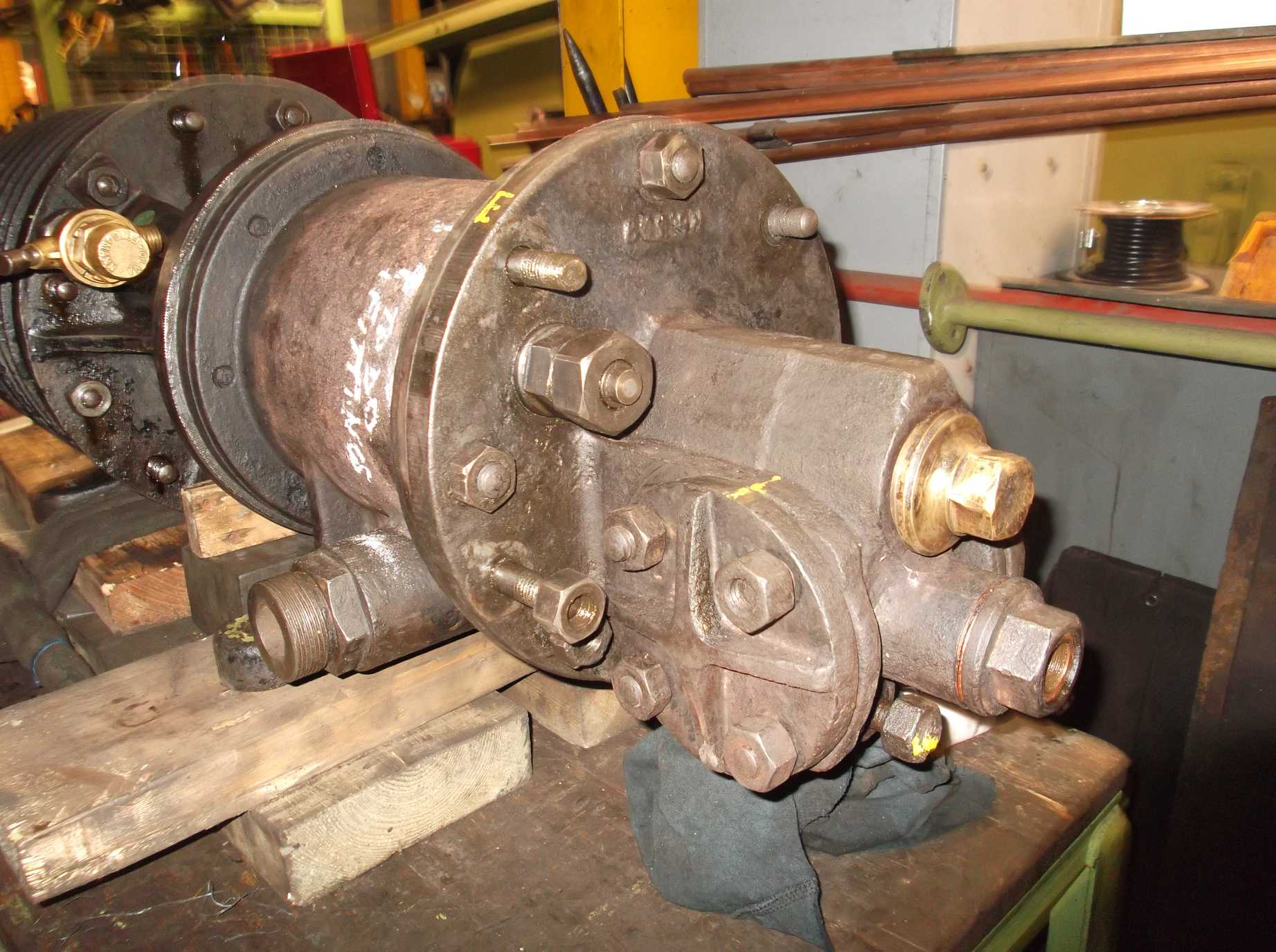 The air pump overhaul began in earnest this week with the air pump being moved on to a bench where dismantling and examination began. Preliminary examination shows little apparent wear to the cylinder bores, but it is early days yet.