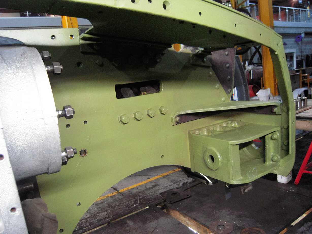 To ensure that we provide maximum protection against corrosion for the bolts, particular attention has been paid to prevent any further water ingress between the dragbox, bolts, nuts and washers. Another fitted bolt made this week was driven home and secured, this one to the middle cylinder slidebar stretcher.