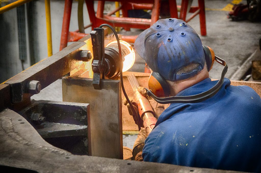 This week, representatives of the Engineering Team visited Llangollen to see progress with the boiler. As reported previously, the left-hand side out wrapper sheet has been welded in place and work continues on fitting it to the outer door plate and foundation ring. Work has begun on the removal of the combustion chamber stays on both sides, and there is a plasma cutter on-site and it is now being used for the removal of the copper tubeplate. The new copper tubeplate being supplied by Crewe is now being machined so we are expecting completion of this in the next couple of weeks.