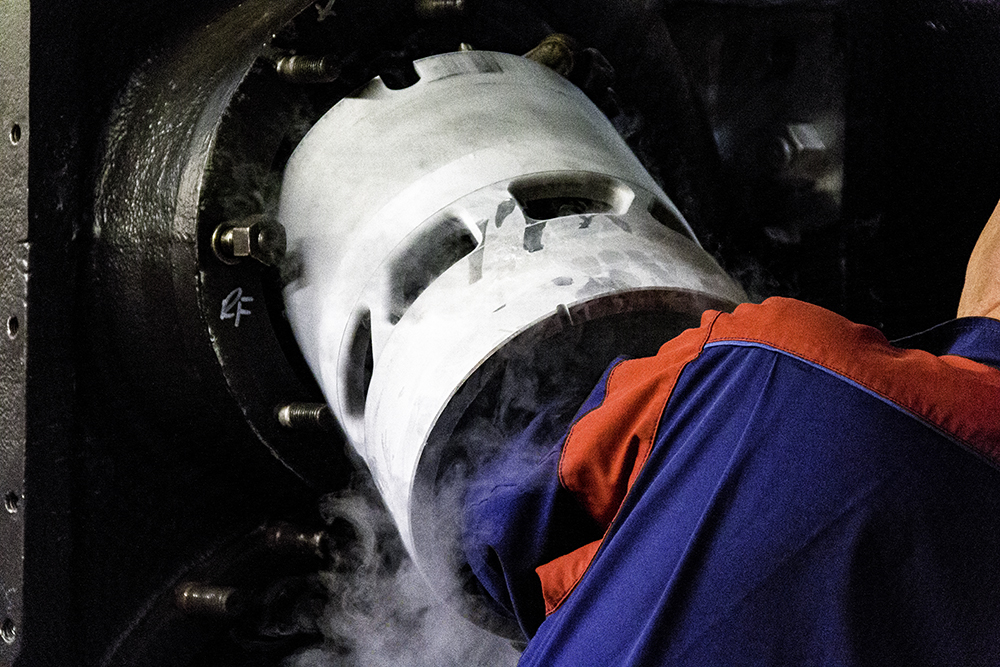 The main task of the week was the fitting the new valve liners. The preparation included cleaning the steam chests and some final deburring of the liners. The fitters from Multi-Tech turned up promptly on Thursday morning, closely followed by the contractor with the liquid nitrogen. The procedure is that the liners are chilled in the liquid nitrogen to approximately -200C. This shrinks them, and they are then fitted while cold and when they return to ambient temperature they are an interference fit.