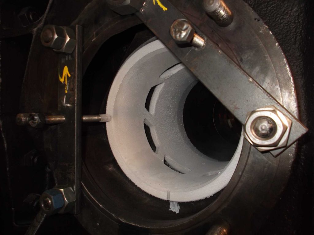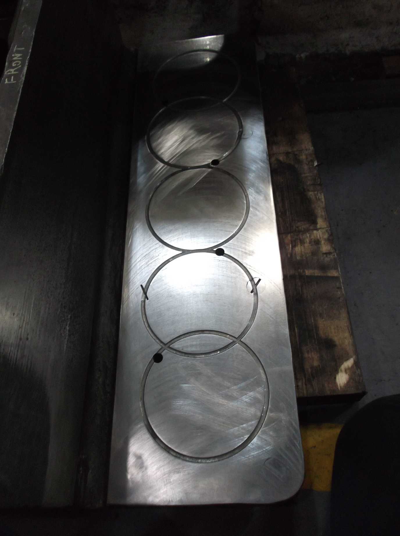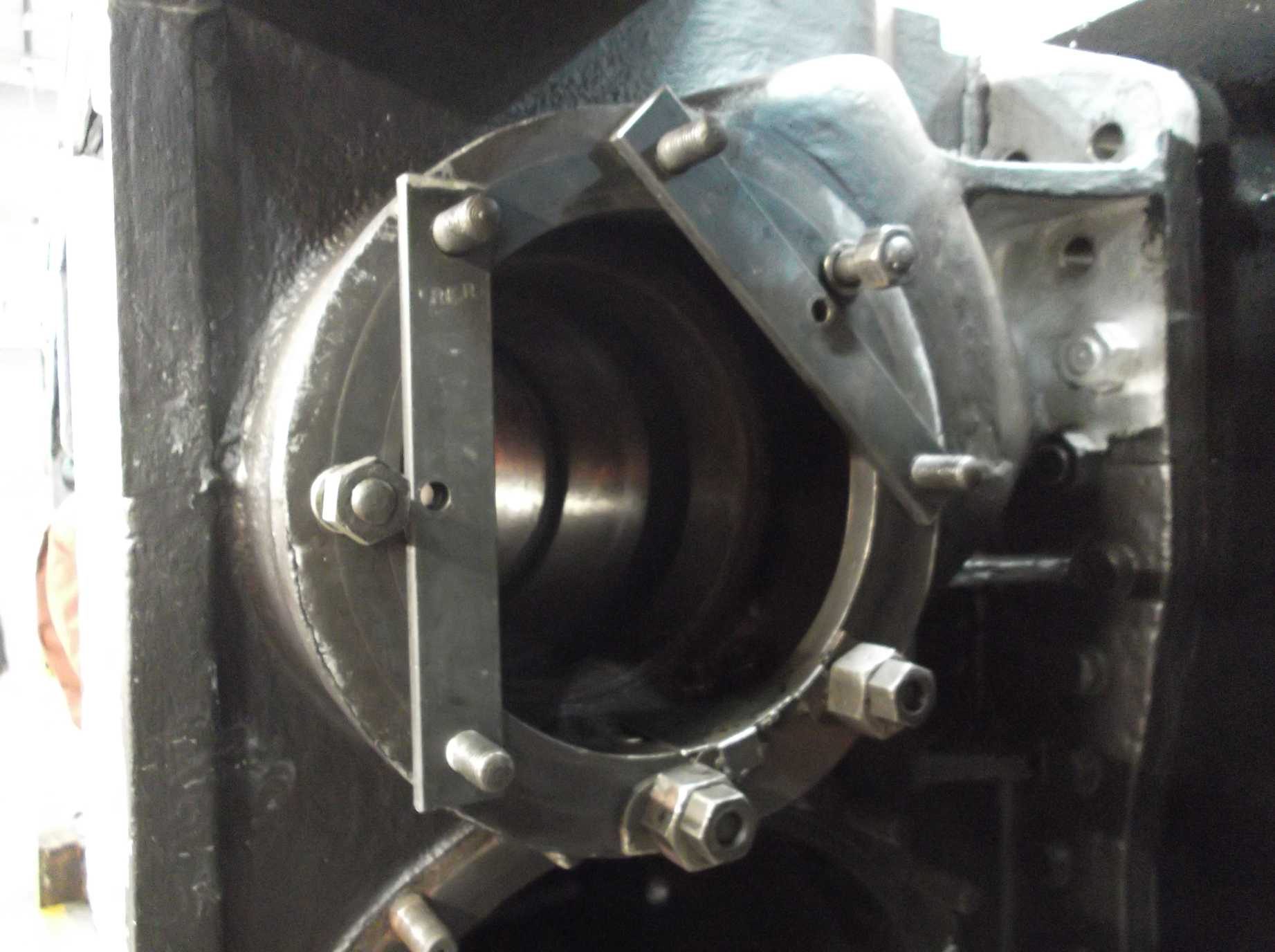The liner fitting went very much to plan, with the tool we made last week used to accurately align them. The clamps we made were used to fix them in place so that there was no movement while the liners were warming. Extra-long clamp screws were made earlier in the week from studding.