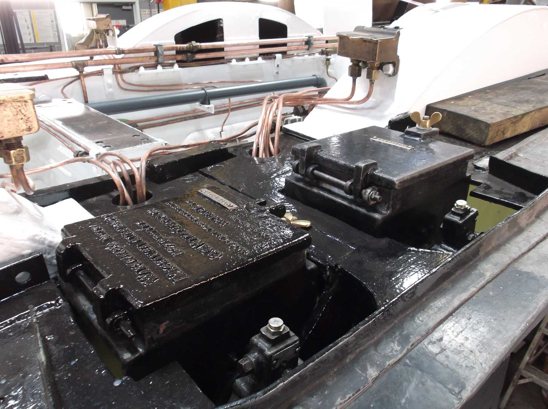 The overhauled cylinder lubricator was returned to York last Saturday and was refitted to the loco this week. After fitting the lubricator, we began fitting the pipework running to the front of the loco.