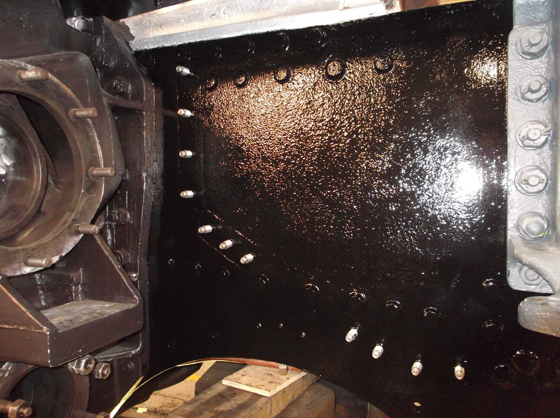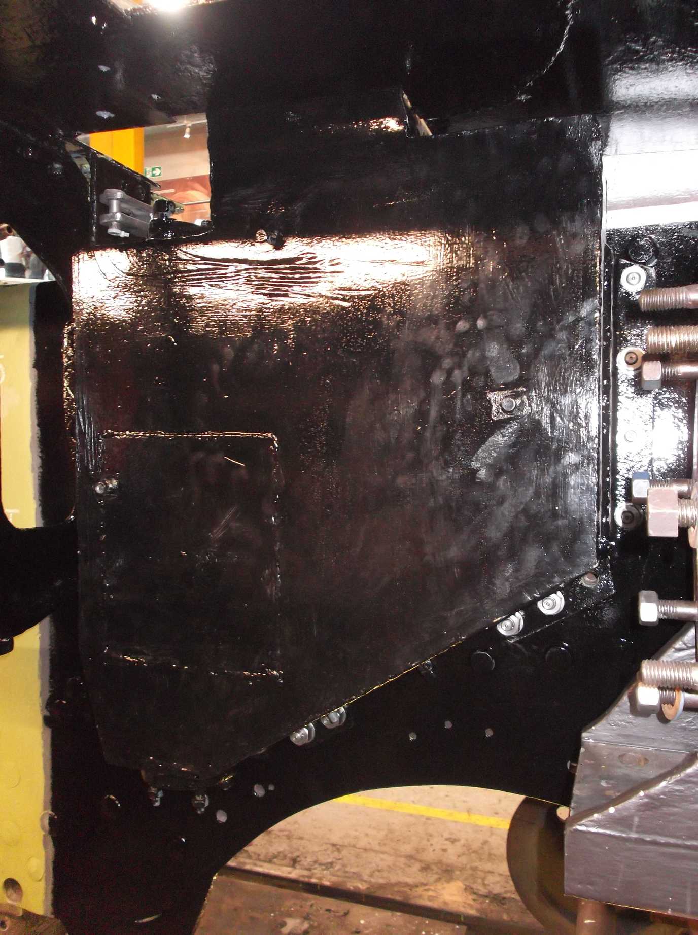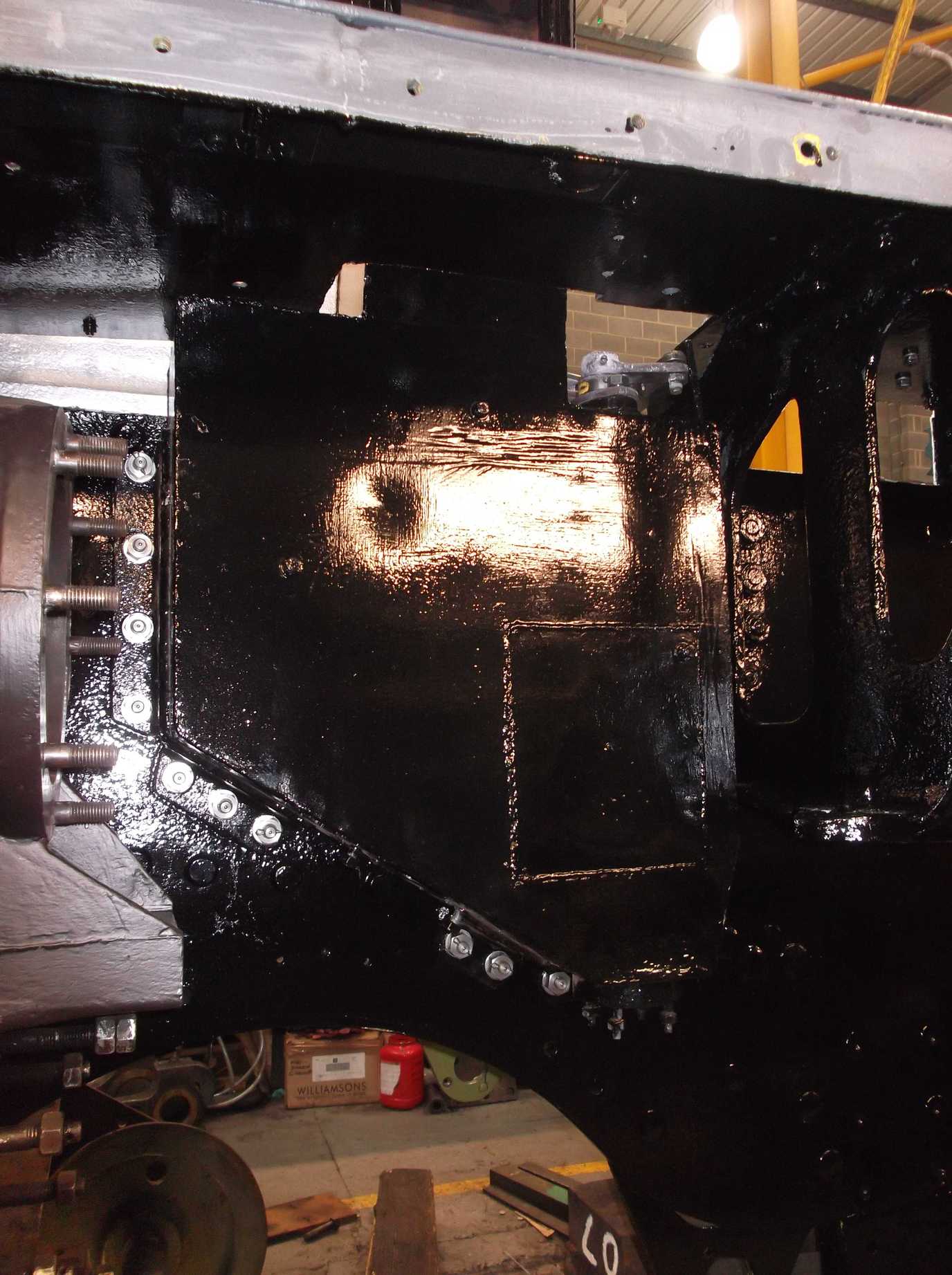 The gravity sandbox studs were refitted to the left side of the frames this week. To enable the sandbox to be refitted, the frames were painted to top coat gloss black on this side.