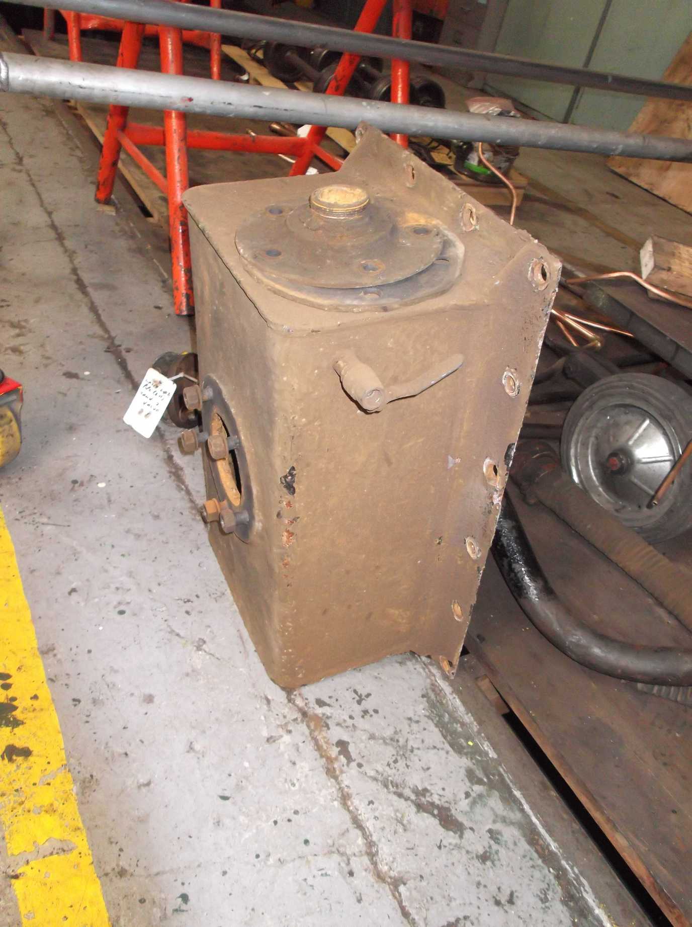 The underneath of the front of the tender is crammed with pipework and brake gear, and the process of removing this has begun. The water feed valves and associated pipework were removed. The 007 Gang of junior volunteers started separating of the water valves from the removed pipework. The water feed is taken from a sump and this is in the form of a box which can be removed. We will remove it so that its condition can be assessed and it will improve air circulation inside the tender. Most of the bolts securing the box have now been removed.