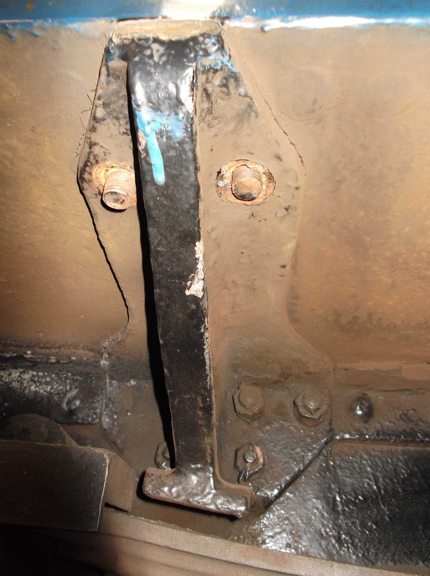 At the rear of the loco frames the damper operating linkage bracket is secured with bolts to the frames. The bolts are wasted so it has been decided to replace them. As this area of the loco has suffered corrosion, this is easier said than done.