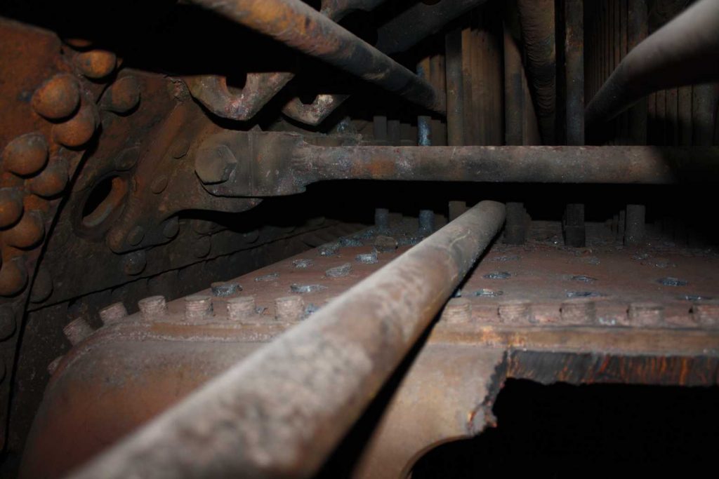 We made good progress this week on the separation of the tender tank from the tender frames. Most of the nuts have been removed from the bolts holding the tank down. There are some still to remove in less accessible locations around the dragbox and tight up against the frames under the tank.