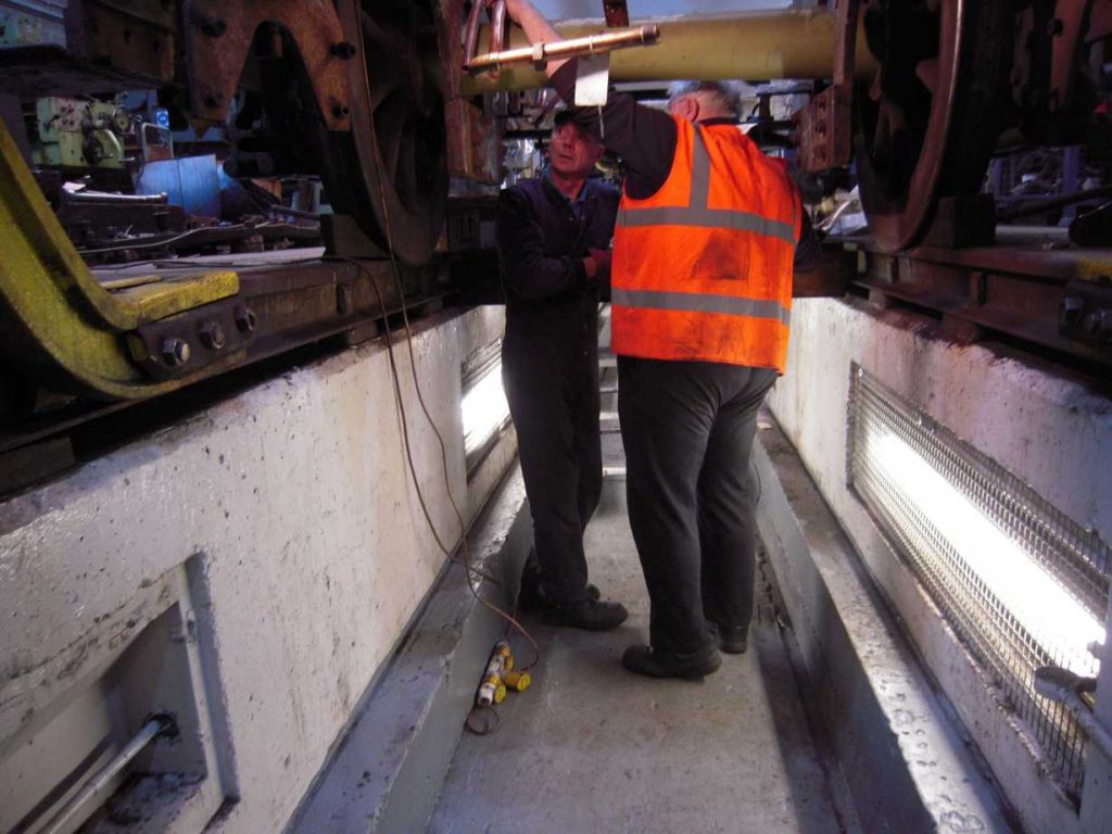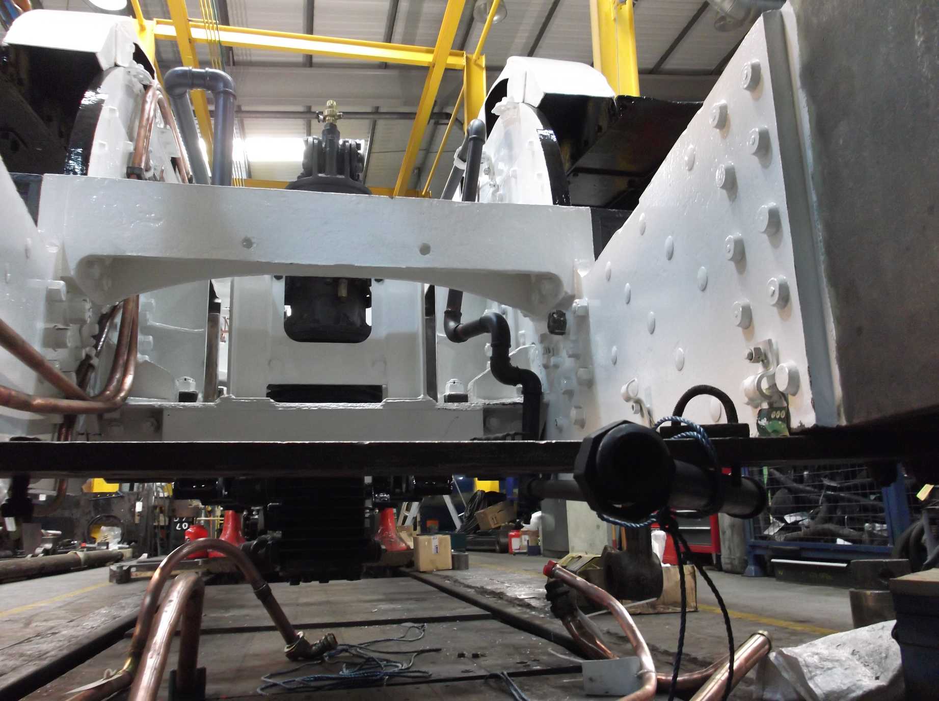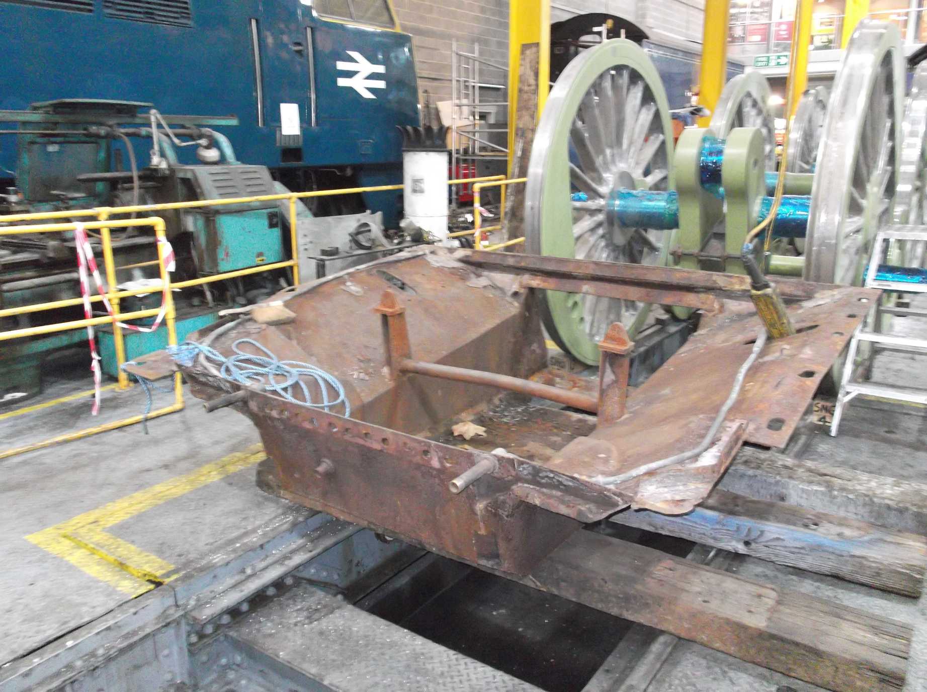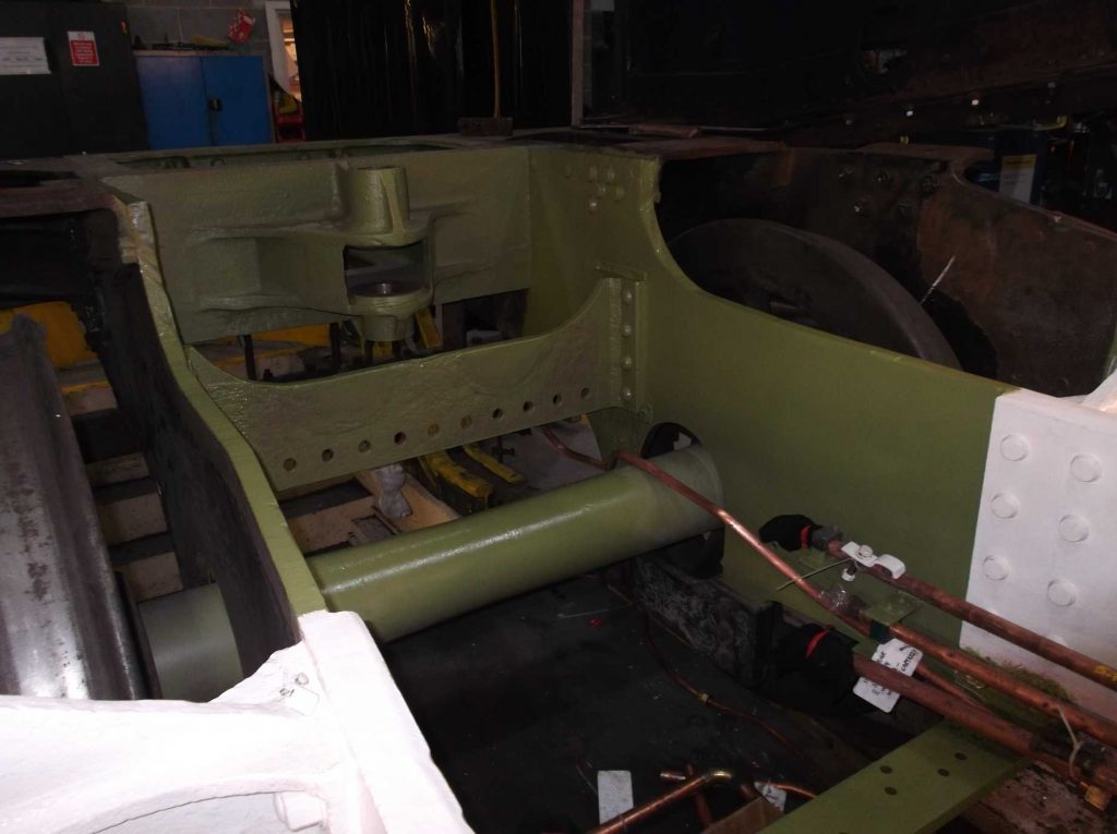 At the other end of the frames work has resumed around the Cartazzi inner frames with cleaning and needle gunning preparing this area for testing and painting.