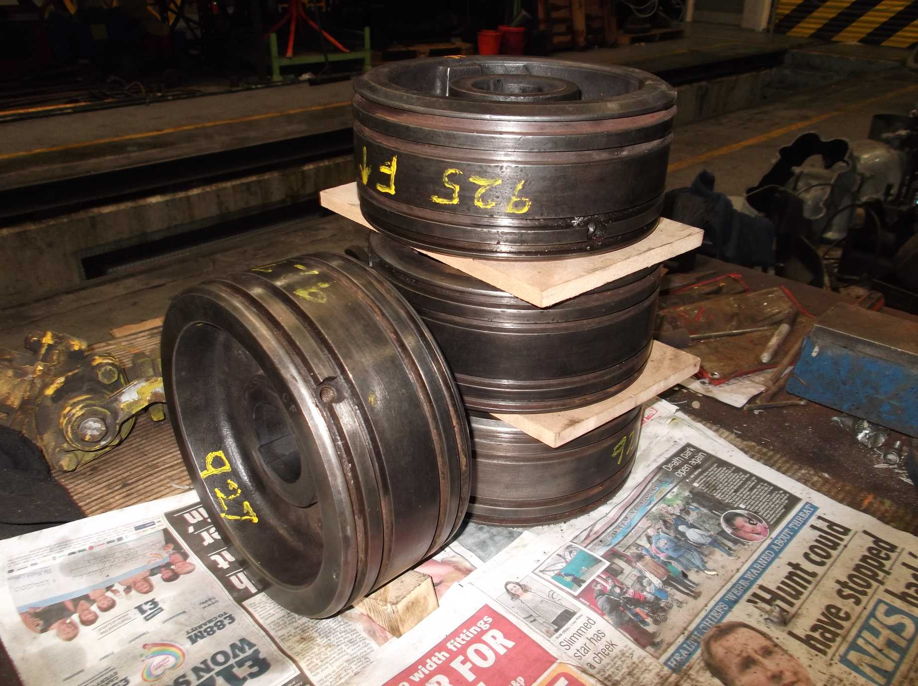 The filling and sanding of the coupled wheelsets continued throughout this week. We are now onto the second set, though the first is still being spot filled to finish it off.