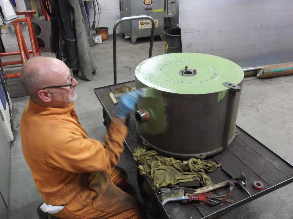 After taking measurements last week the axleboxes are now having bearing material cast on at the workshops of the NYMR at Grosmont.