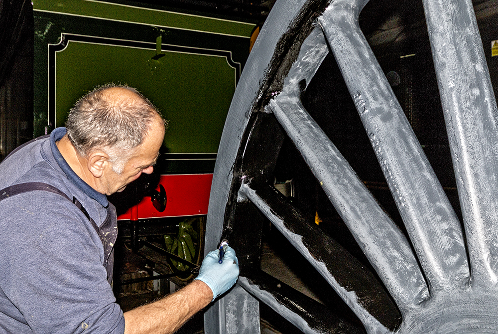 The mammoth job of painting the wheels continues with the final coat of black gloss. Painting of the bogie wheels continues with gloss being applied to axles and wheels.