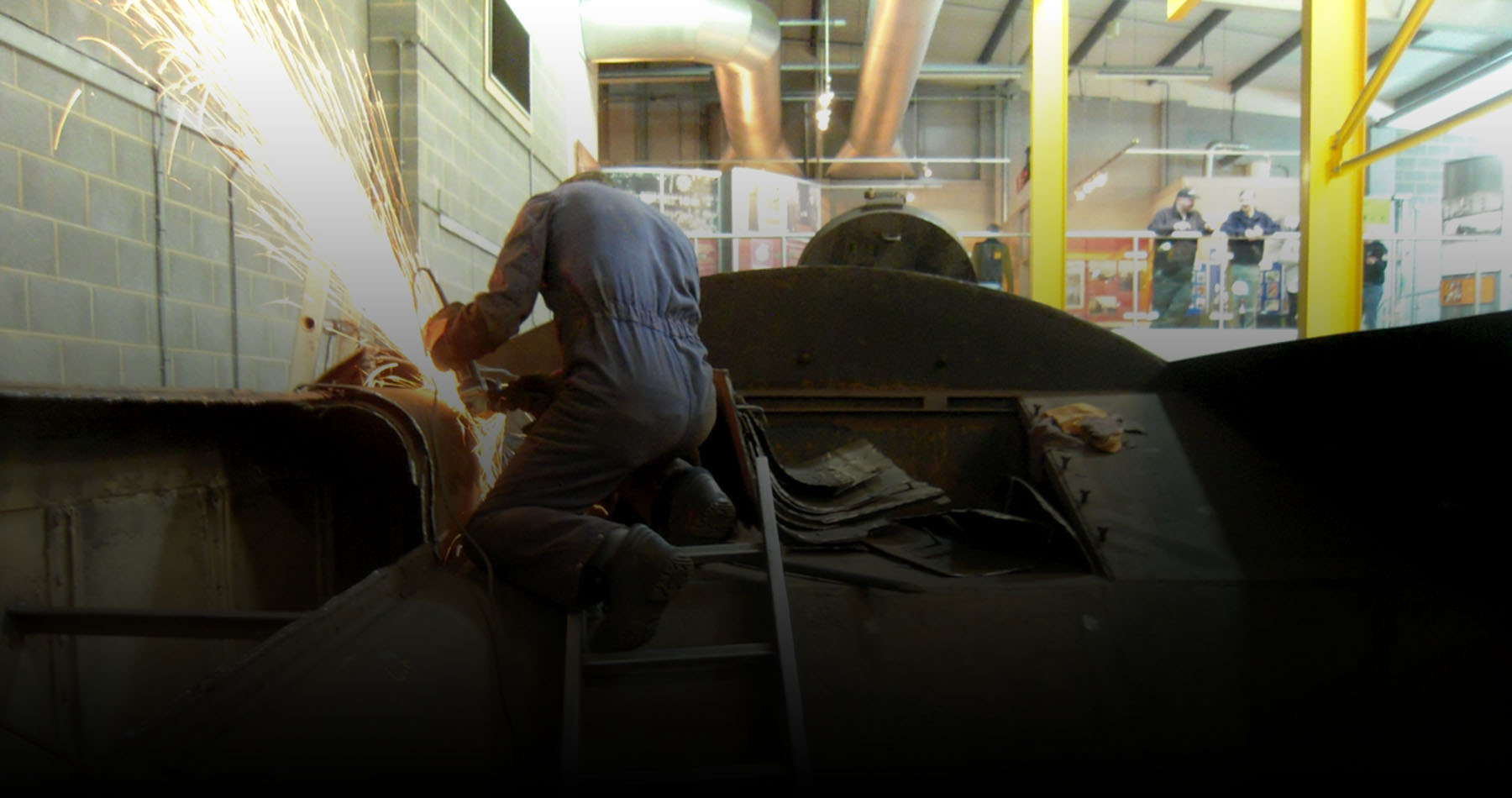 Further platework from the corridor top has been removed. All the roof has been removed back to the rear of the coal space. There is some more work to be done around the cab door end. Drawings of the tender have been compared to the tender as these drawings will form a basis for ordering the new plate. The cut out plate has now been removed from the workshop and put in the yard with other scrap.