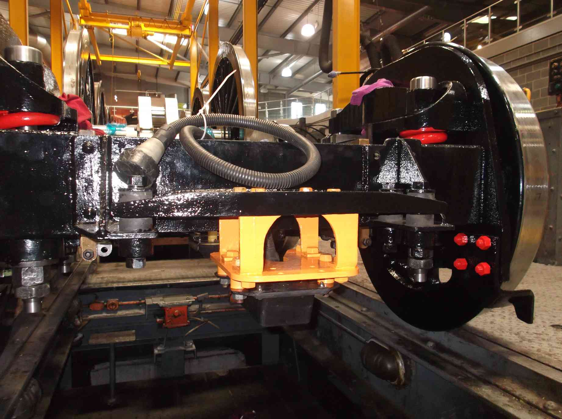 All the bogie spring hanger bolts have now been drilled for their split pins, and while out the spring beams were adjusted to ensure when the bolts are fully loaded by tightening the bottom nut, they don’t spin. The bolts have a flat that locates against a face in the beam which is supposed to prevent this. The faces were repaired, so we shouldn’t see a repeat of the difficulties we had when trying to remove the old bolts.