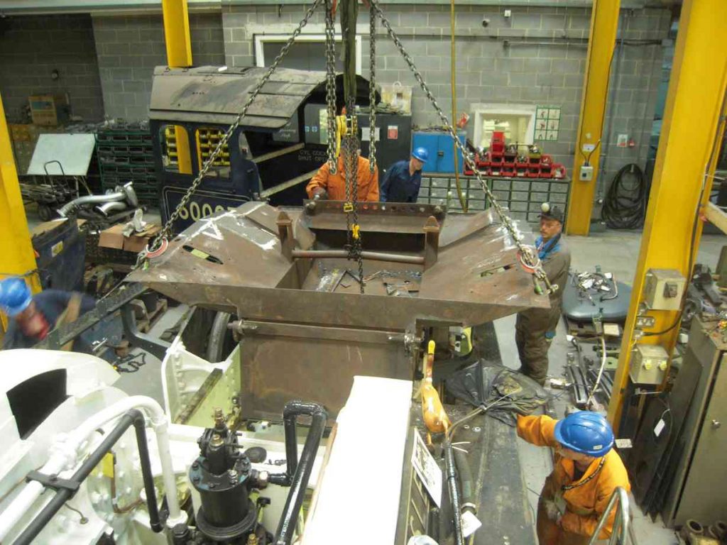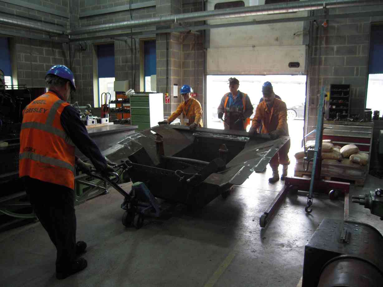Away from the tools there has been a considerable amount of preparation, with valuable input received from our Team Leaders. As a result of this effort a risk assessment was completed and after discussions with lifting contractors we devised a procedure. We must thank Paul Gardiner of Durham Lifting for being so generous with his time. Paul planned the lift and supplied all the equipment that would be required, only requiring us to find a few shim plates and use some of our sleeper ends on the day. When the date was firming up for the delivery of the equipment, a roster was drawn up and the volunteer Engineering Team rallied to fill it. We were able to devise a plan for the week which allowed us to accomplish everything we wanted, while being unhurried within our normal working hours.