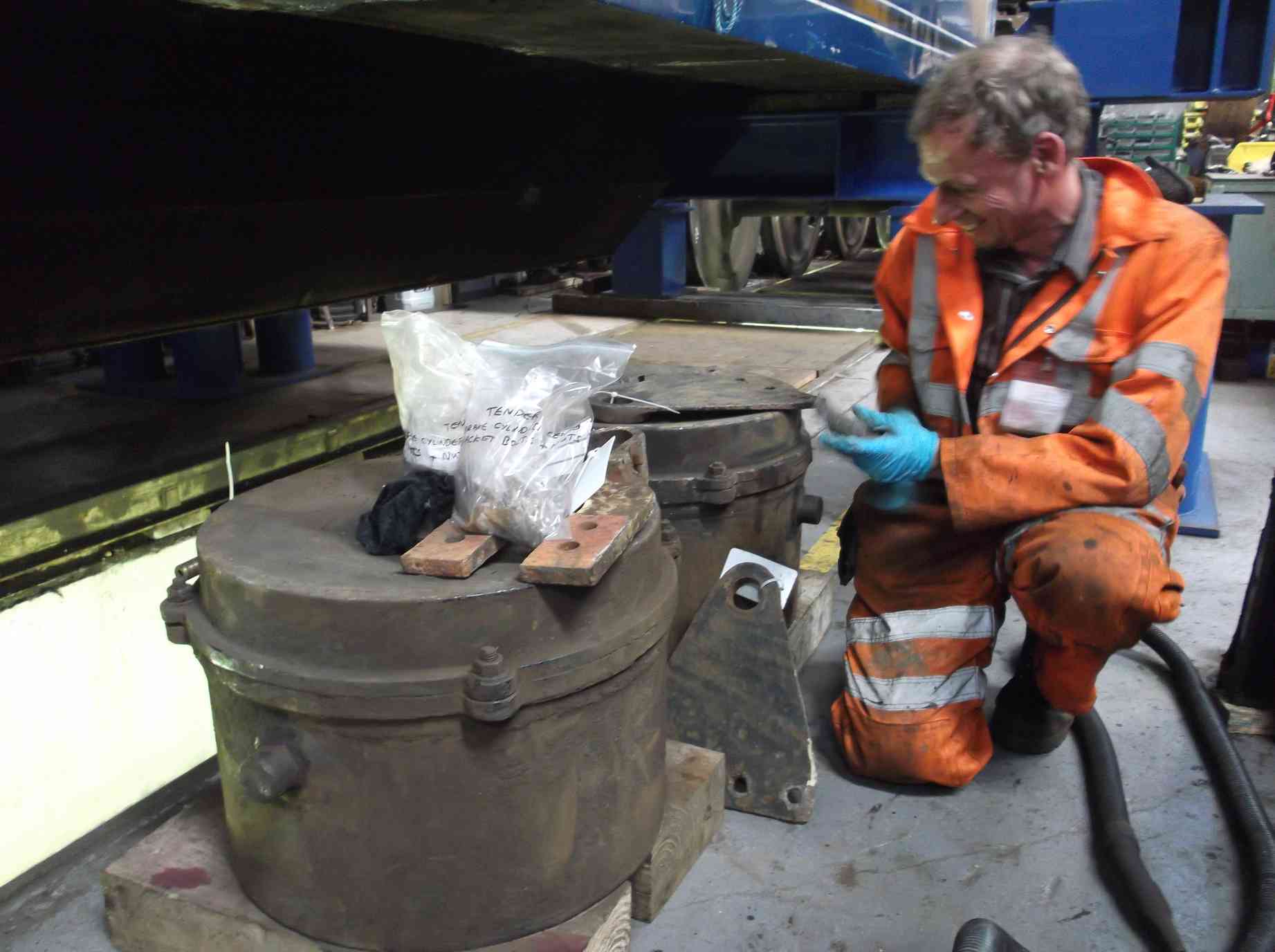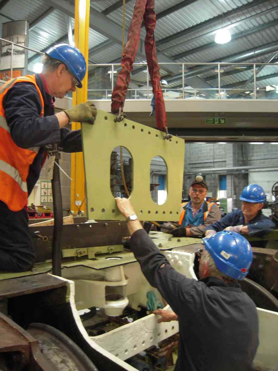 Most of our time during week 27 has been spent on lifting and separating the tender tank and frames. This has required a program of preparation over many weeks, including removal of numerous seized bolts holding the tank down and also pipework and electrical systems.