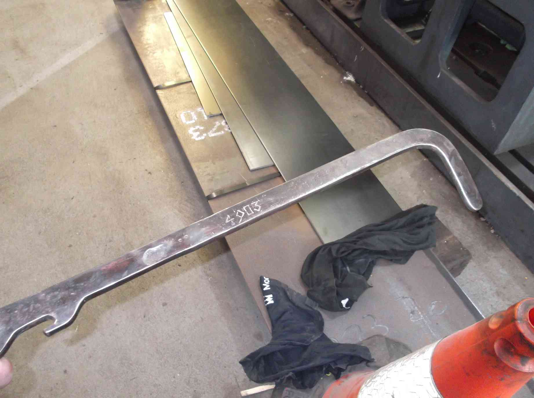 The detailed examination of the tender frames continues with only one loose rivet found, which has now been removed. The area of frames at the leading end are wasted in places and these will be thickened by the addition of weld. Welding the frames will have to be carried out by a coded welder and be accompanied by documentation. A start on the prep for this was made by grinding back to bright uncorroded material which will accept a good weld. More needs to be done. A supporting beam will be fitted between the frames to ensure the frame spacing is not affected during welding. The end plates for the beam have been made.