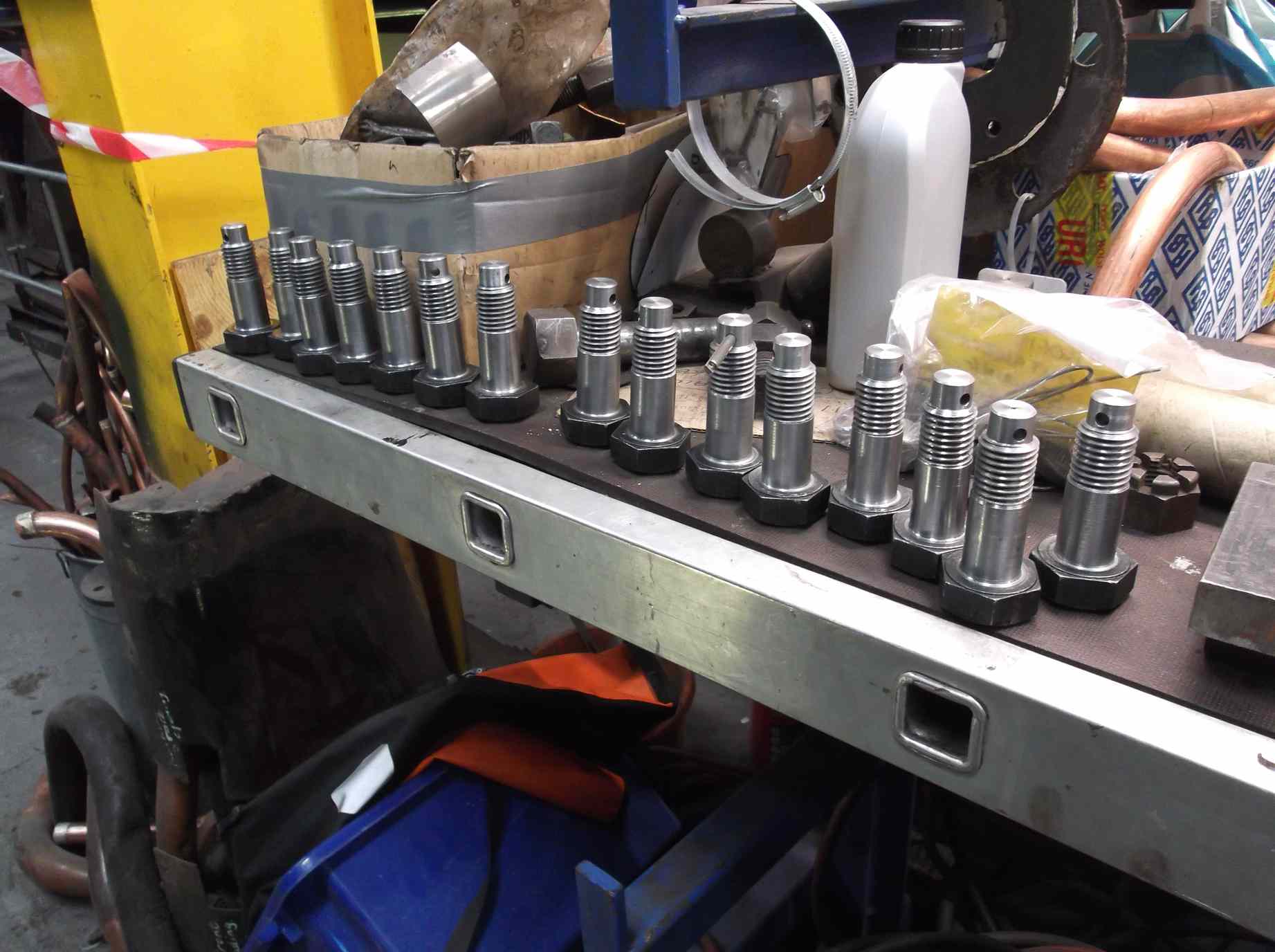 Work on the slidebar bolts continues with all the bolts made, trial-fitted and tried in. The heads have been drilled for fitting of the feather keys, to the BR drawings.