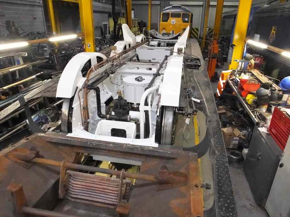 With the pressure testing complete the front-middle lower section of streamlining has been refitted. This enabled the front coupling to be refitted and correctly pre-loaded for shunting.