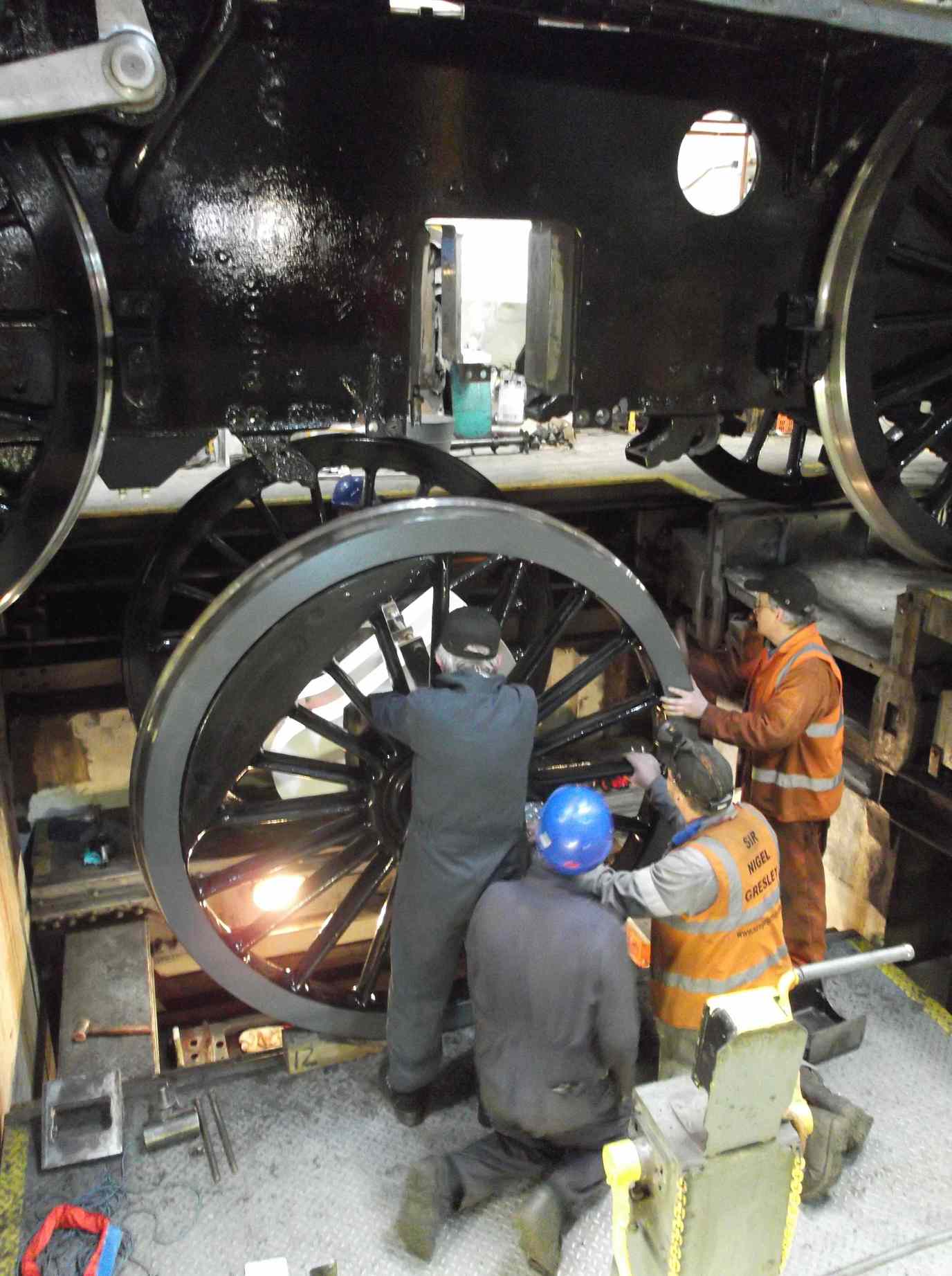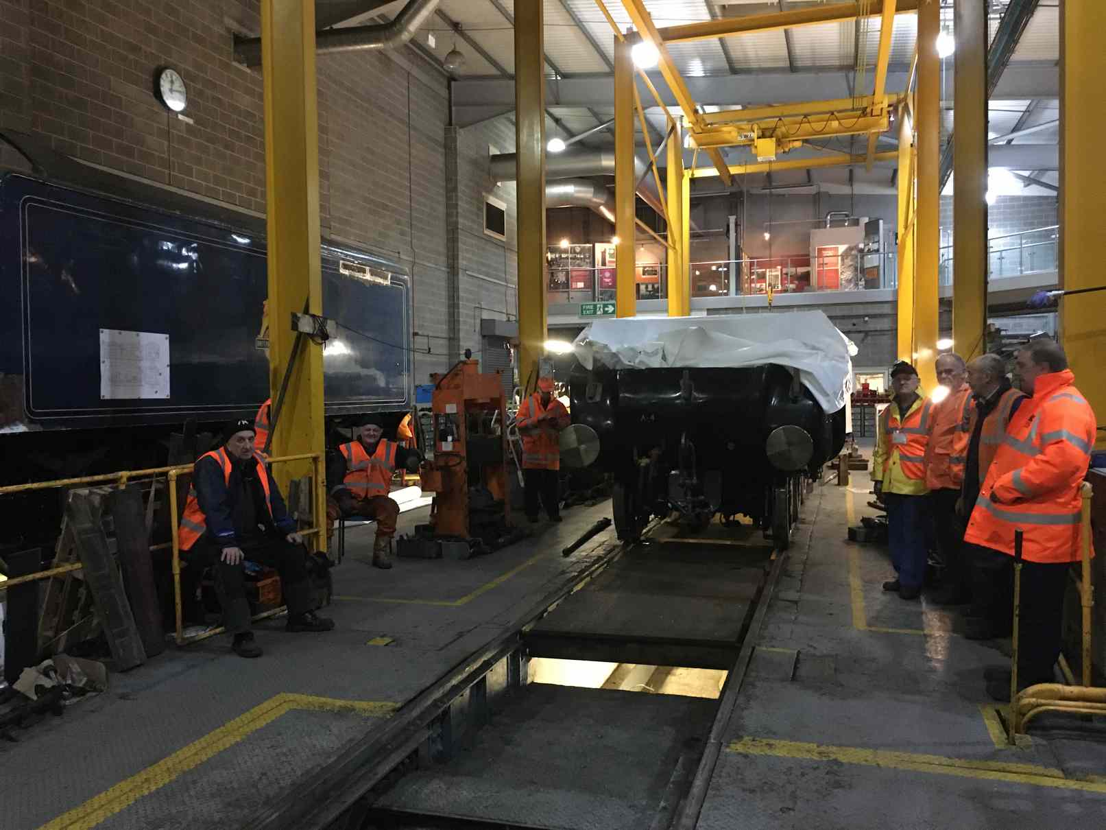 The same evening, with still a full Engineering Team in attendance, the frames were shunted back in to the workshop, and the tender positioned in front of the loco.