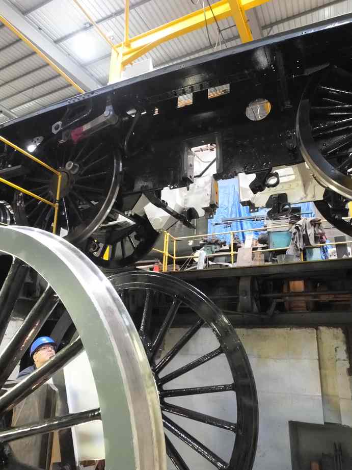 To prep the tender for moving, the final oiler pads were fitted and the cotter pins on the brake gear between the frames were fitted. The tender-to-loco coupling was also refitted. During the shunt the tender was stopped under the wheeldrop crane and the front balance weight was refitted.