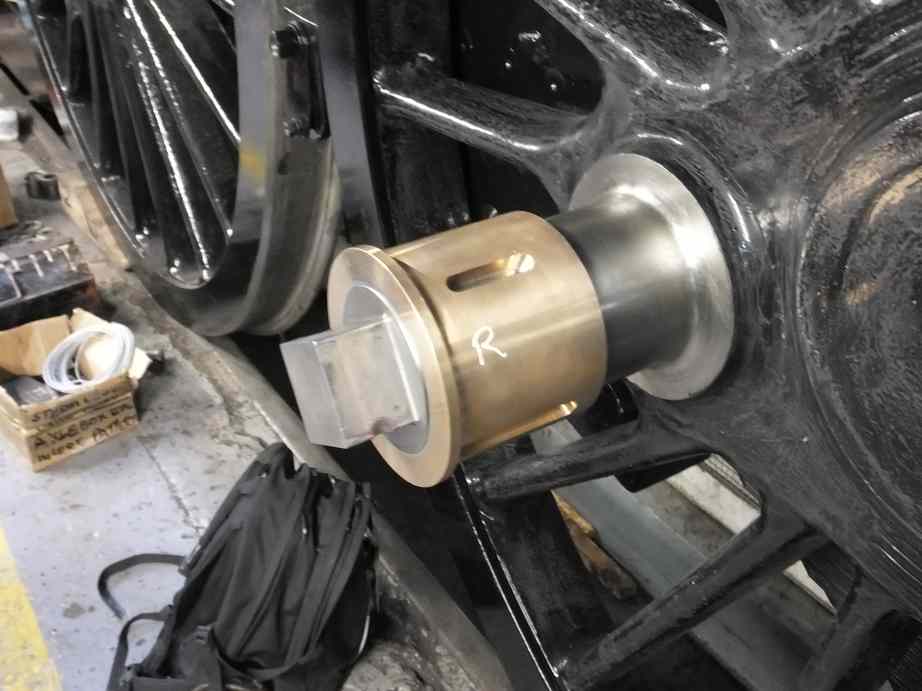 The outside big end bushes have been white metalled and machined by contractors and are now back at York. With the side rod bushes they have been checked over and keys are being fitted. Some of the old keys are being reused after adjustment, but new keys will also have to be made.
