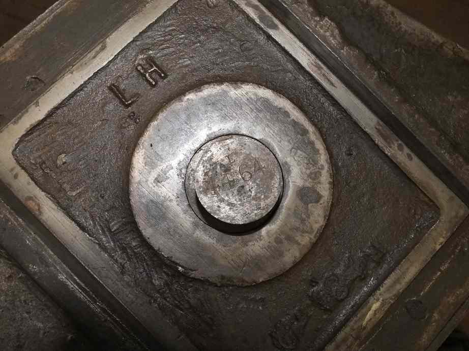The measurement and assessment of the Cartazzi axleboxes, horns and bearings is ongoing. One of the bearings is damaged and shows cracking so will require replacement. The bronze wedges show wear and movement of their centres due to this wear. It is estimated that there is sufficient material in the existing castings to machine to correct the centre offset and to remove the wear.