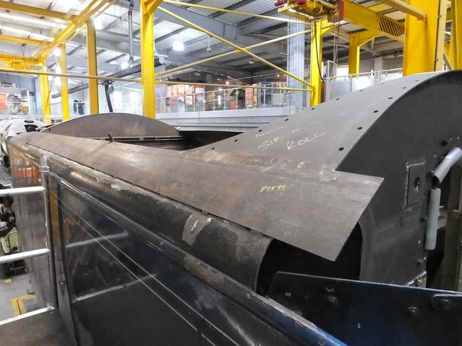 Meanwhile the Boilermaking Team has been working on the fitting of the new material to make up the streamlining along the right side of the tender and over the front bulkhead. The new steel arriving with the battery box flat pack.