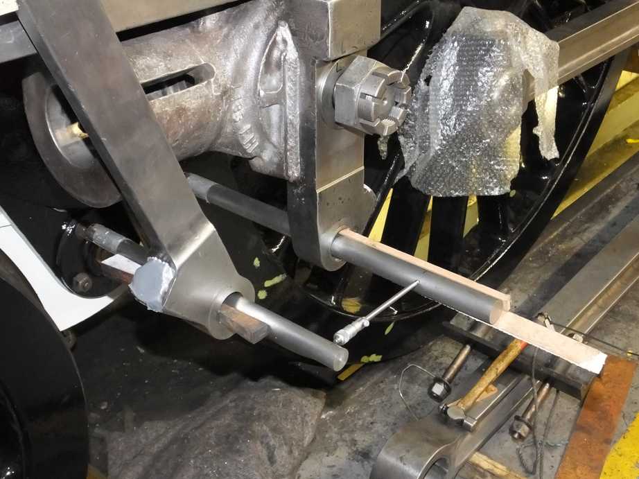 It has also been found that the swing of the combination lever isn’t exactly in line with the slidebars. This makes the union links tight on the crosshead and combination lever in parts of their travel. This all probably originates in the mix and match approach of Crewe when they used 60026 and 60007 parts. To free off the tight spots the combination levers have now been adjusted to a best position where their travel is free. The right is now fine for final fitting but the left union link requires attention to align the pin holes with those in the crosshead. This won’t be easy as the union link holes are hardened.