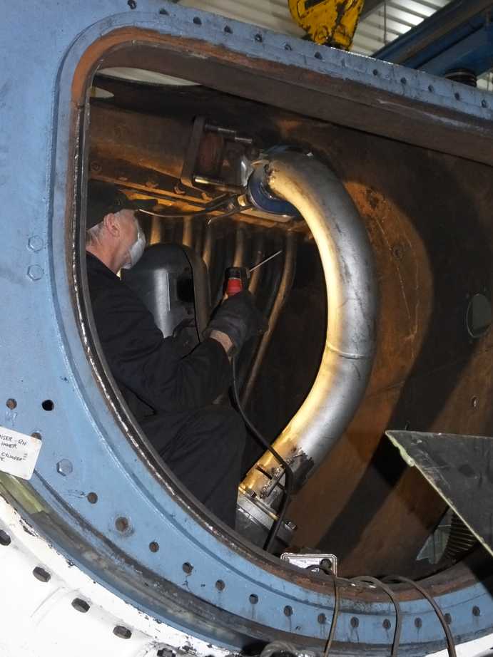 The left and middle pipes have now been dealt with. Before the pipes are sent to contractors for welding our boiler insurers have requested that they see the welding procedure documentation. This request has been sent on to our usual welding contractors.
