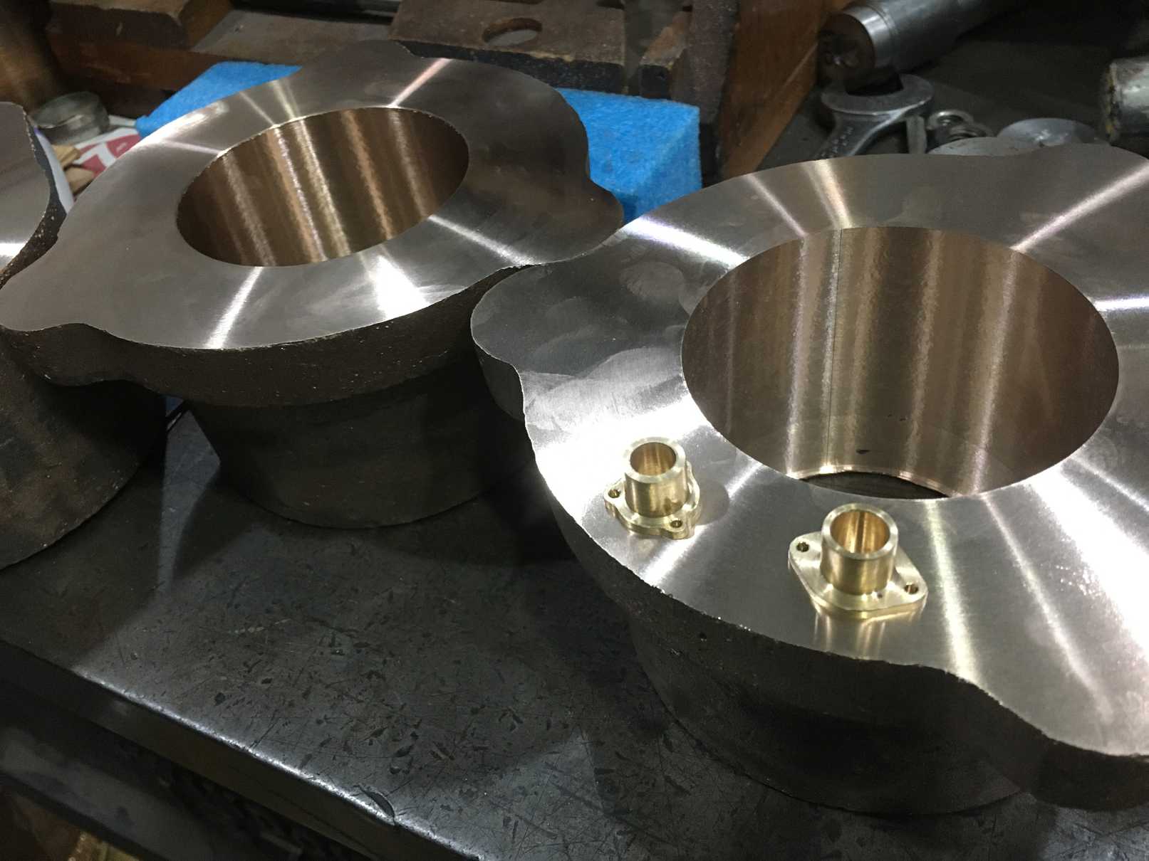 The white-metaled leading valve crossheads have been collected from the white-metallers and all the necessary dimensions have been taken from the valves and crosshead slides to enable the crossheads to be machined.