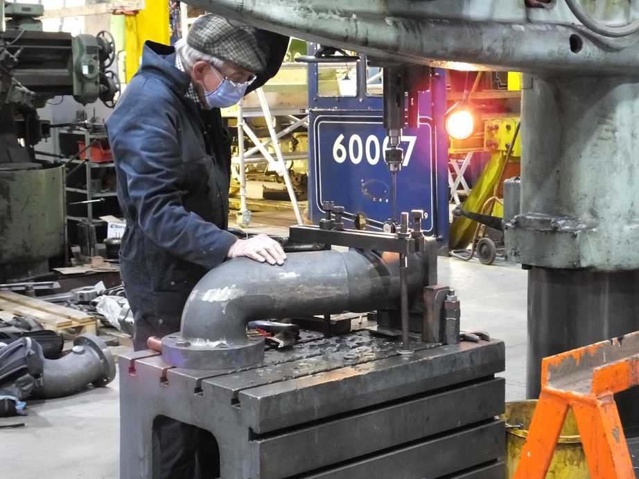 In the smokebox the right and last steel steam pipe has been trial fitted. This pipe required a couple of cuts to get it to fit on the new cast iron pipe. All three steel pipes have now been set up and require contractor welding. A number of contractors have been asked to quote for this work, which has also been discussed with our boiler insurer.