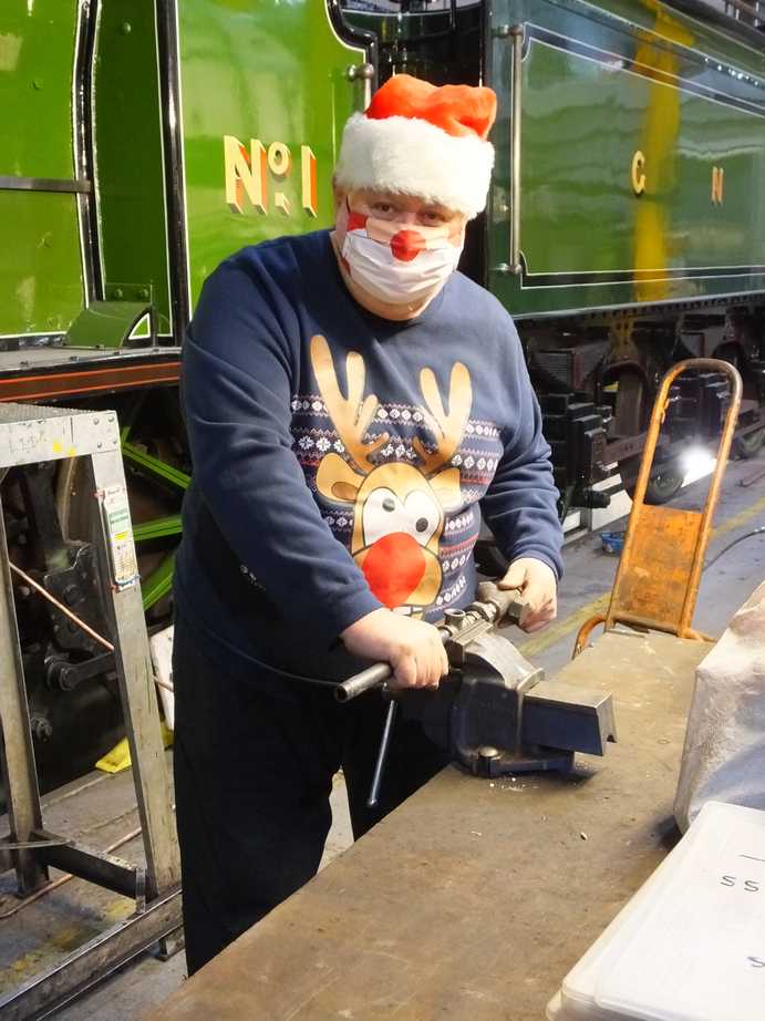 On the tender top the installation of the pipework and air tanks continues. To increase the hours spent on piping, another volunteer has been added to the pipe-fitting team.