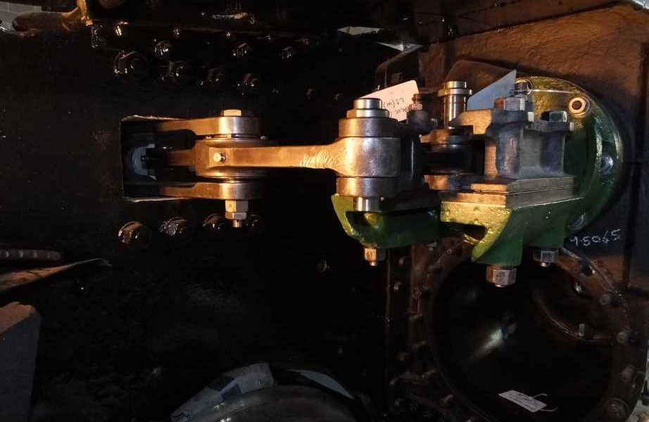 Work continues on the lower slidebars at their ends where assembly has led to them closing, reducing the clearance for the piston crossheads. The sidebars have been carefully dressed to even up the clearances. The right side has been signed off by our CME.