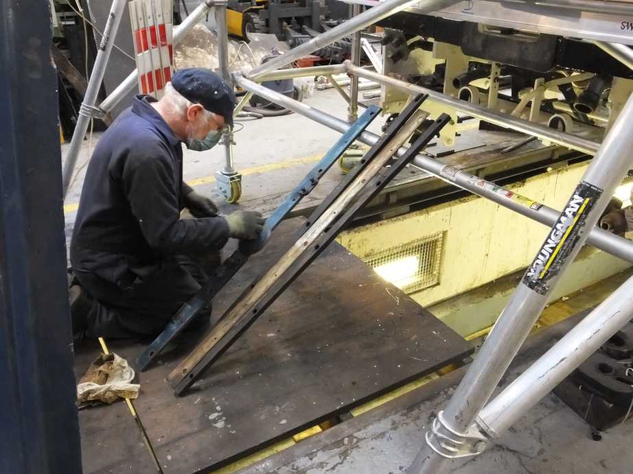 The drop grate cab mechanism has been fitted to the cab floor plate.